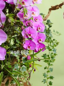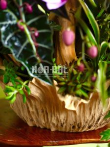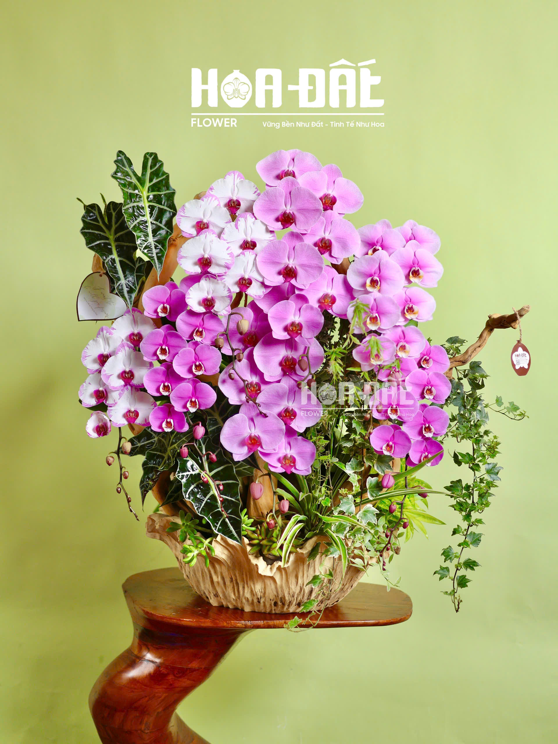 Hoa Lan Tiểu Cảnh Tặng Sinh Nhật Trong Chậu Gỗ Lá Sen