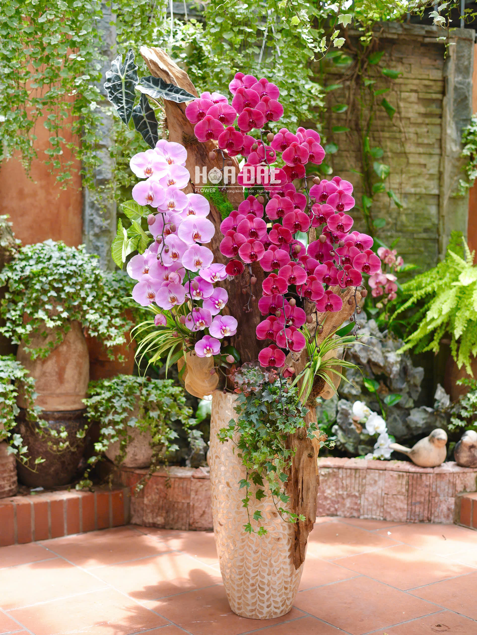 Lan Trồng Chậu Lũa 15c kết hợp chậu Khảm Trai